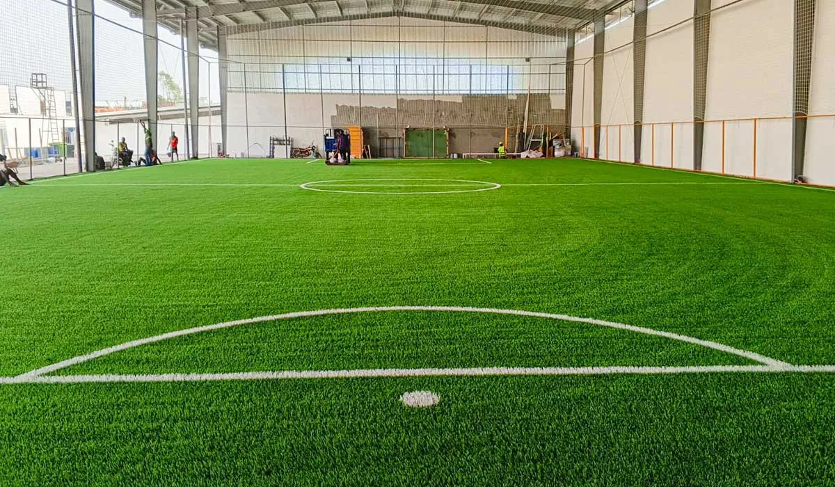 Kapalı modüler futbol sahası, yüksek performanslı suni çim zemin ile donatılmıştır. Uzun ömürlü yapısı, düşük bakım ihtiyacı ve oyuncu güvenliğini destekleyen özellikleri sayesinde suni çim, yoğun kullanıma uygun ve sürdürülebilir bir çözüm sunar. Modüler taşıyıcı sistem, hızlı kurulum ve uzun vadeli kullanım avantajı sağlamaktadır.
